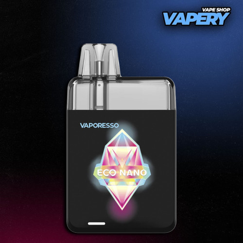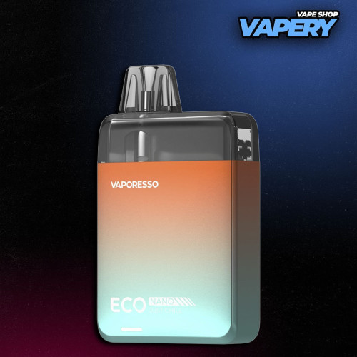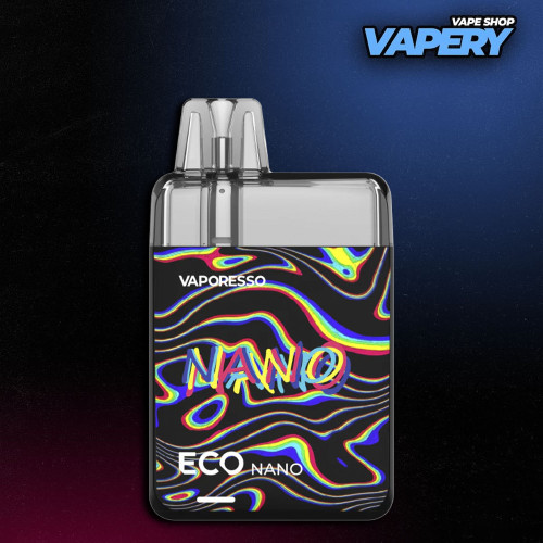 Pod-система Vaporesso ECO Nano отримала квадратний форм-фактор із заокругленими краями. Виробник представив моделі у 14 колірних варіаціях. Їх можна розділити на три категорії: з градієнтом, однотонні та з графіті. Градієнтні моделі виконані в металевому корпусі, а однотонні та варіанти з графіті мають покриття soft-touch.